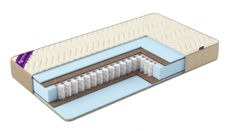 Количество слоёв. Чем выше матрас, тем больше внутри слоёв, каждый из которых делает своё дело. Тонкий матрас (10–12 см) просто физически не вместит полноценный пружинный блок плюс качественные наполнители.
