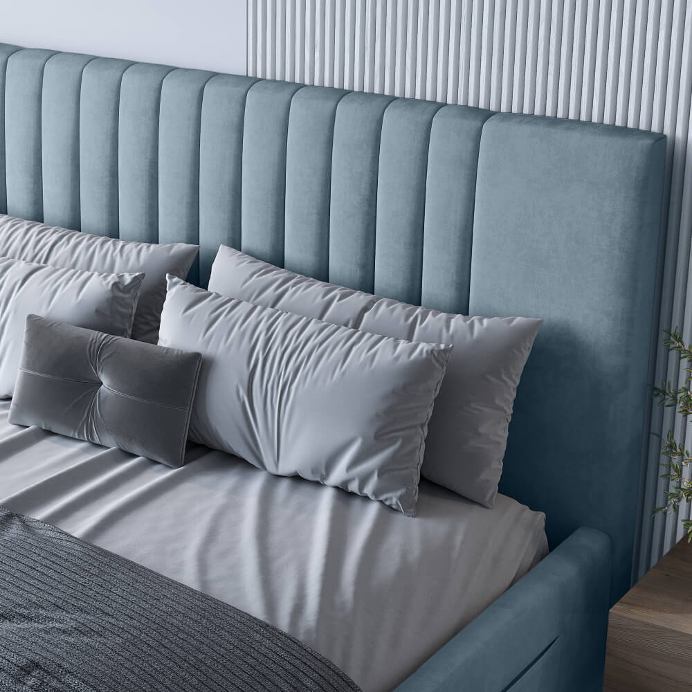 - Дизайн с вертикальными линиями изголовья, разбавят монотонность интерьера.