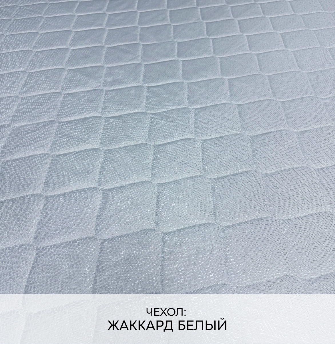 Жаккард белый - это высококачественная ткань, которая является ключевым элементом комфорта любого матраса. Изготовленная из сочетания хлопка и полиэстера, она объединяет мягкость натурального волокна и прочность синтетической нити. Ткань обладает отличными эксплуатационными свойствами: Гипоаллергенность — безопасна для чувствительной кожи. Материал «дышит» — обеспечивает оптимальный микроклимат во время сна. Долговечность — сохраняет форму матраса и внешний вид при длительном использовании.