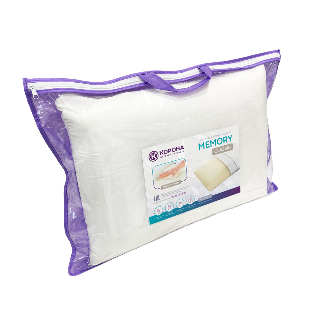 Подушка стандартного размера классической формы. Мягкий и высококомфортный материал «Memorix» подстраивается под форму головы и обеспечивает необходимую поддержку шейному отделу позвоночника, не пережимая сосуды и не нарушая циркуляцию крови. Обработка ионами серебра продлевает срок службы изделия и имеет антибактериальный эффект. Подушка абсолютно гипоаллергенна, не накапливает пыль и имеет высокие эксплуатационные характеристики.- Состав: формованная анатомическая пена с эффектом памяти «Memorix»